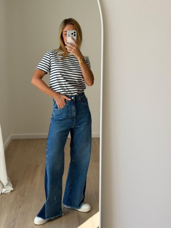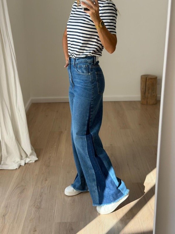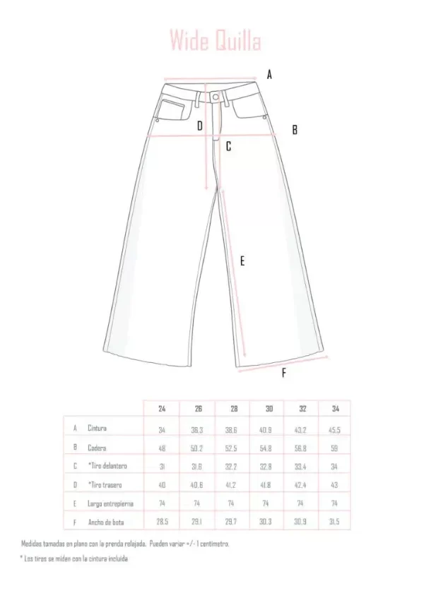 WIDE QUILLA es un jean de tiro alto, ajustado sutilmente en cintura y cadera.