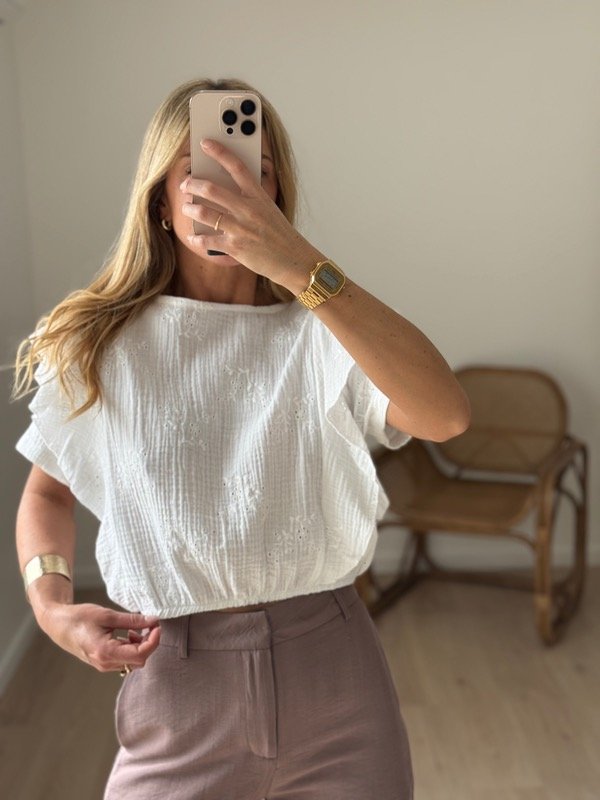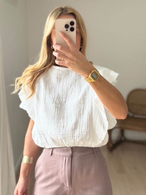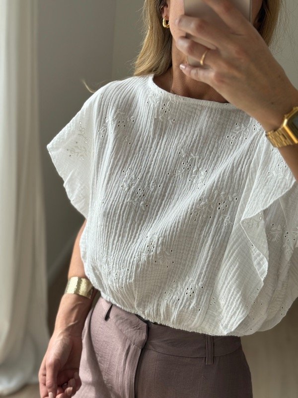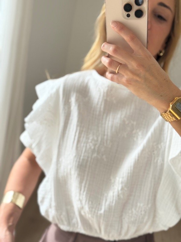 Blusa broderie con volados , elástico en cintura.
