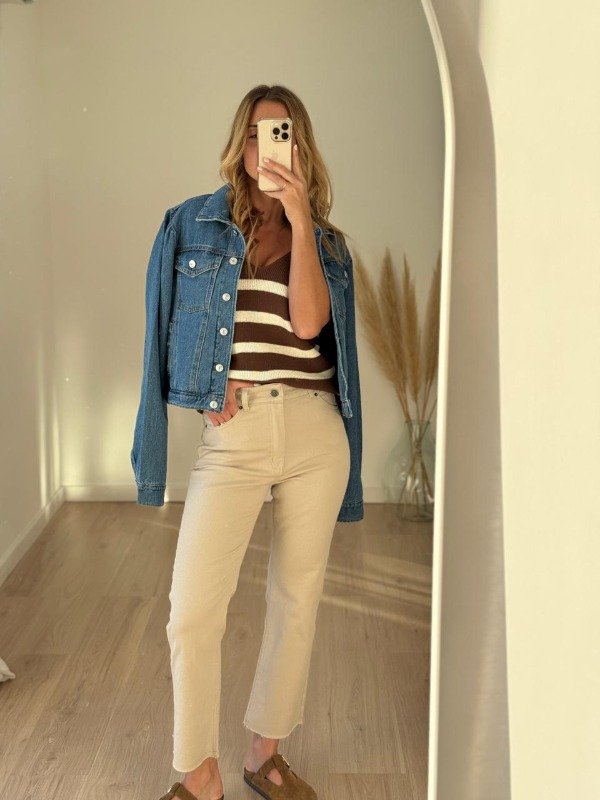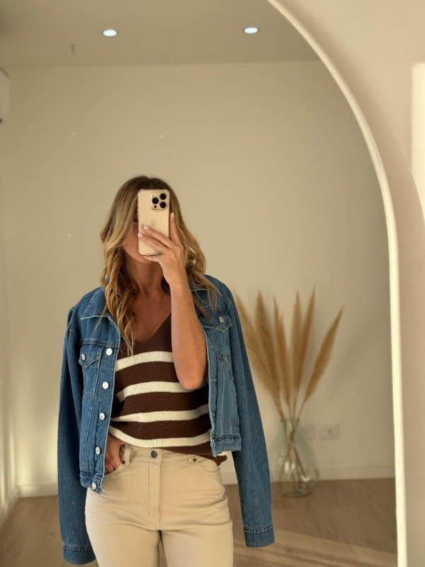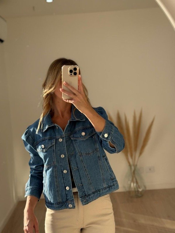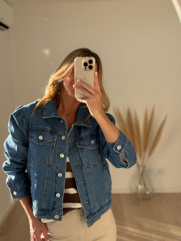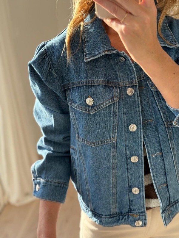 Campera jean modelo semi crop manga princesa.