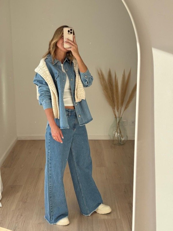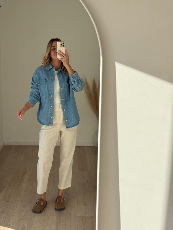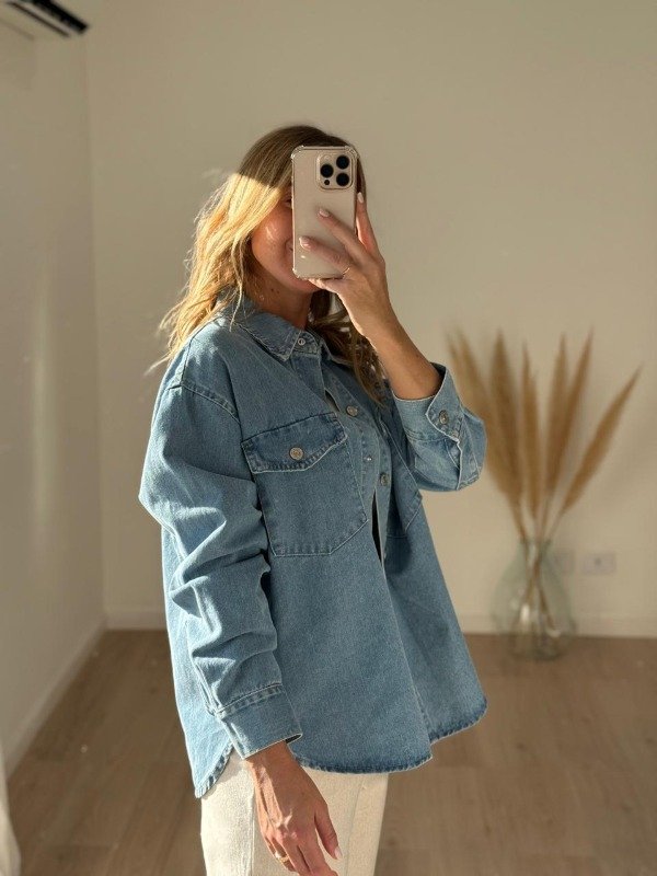 Chaqueta jean con botones a presión.