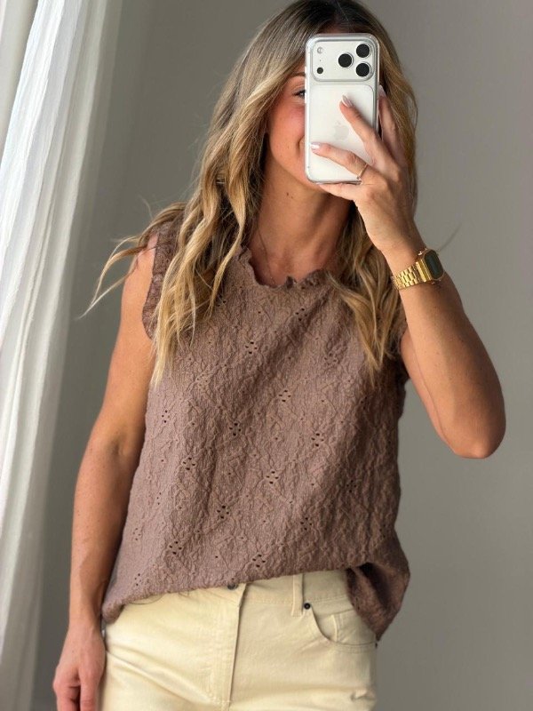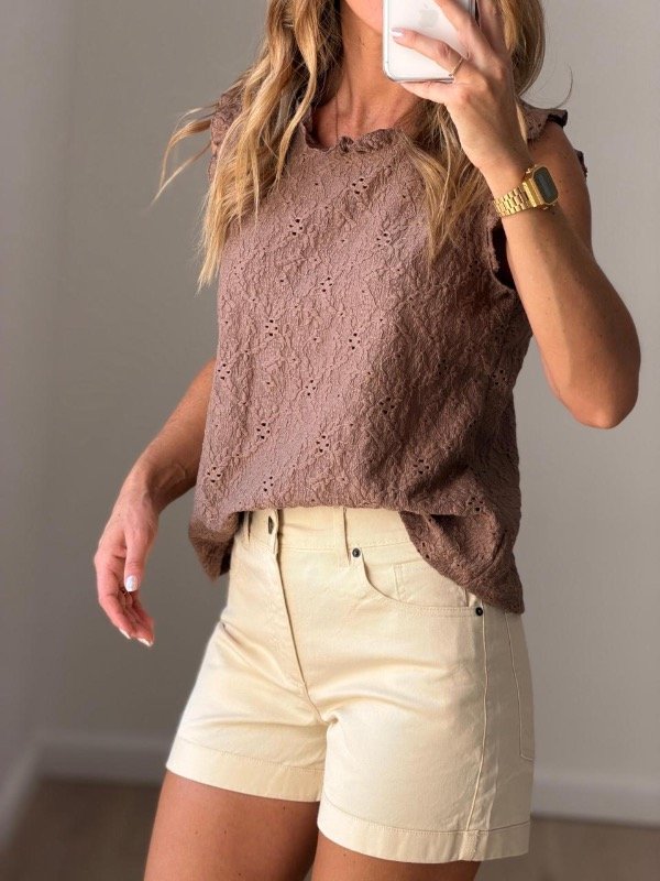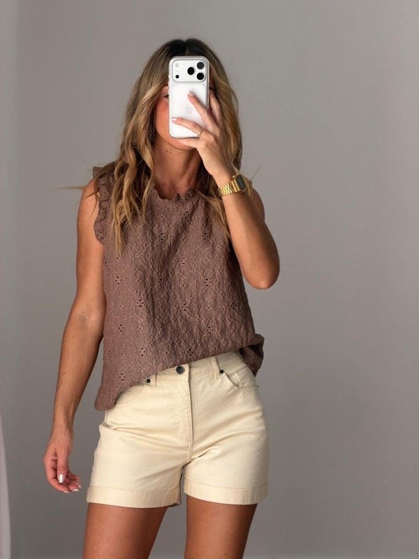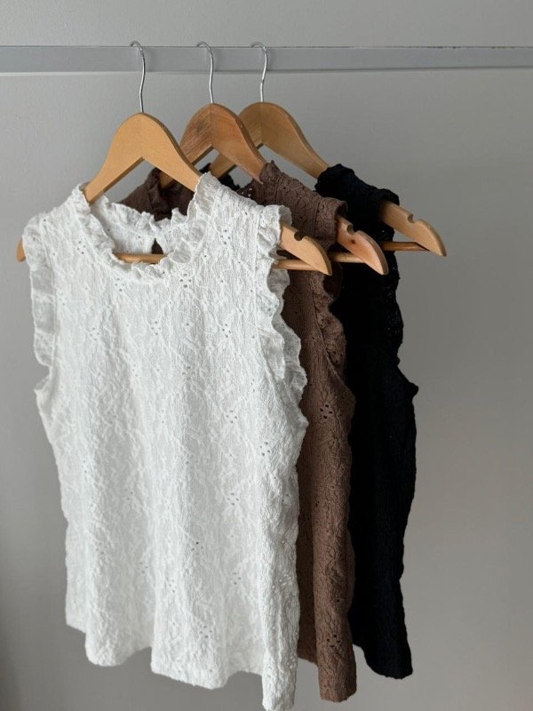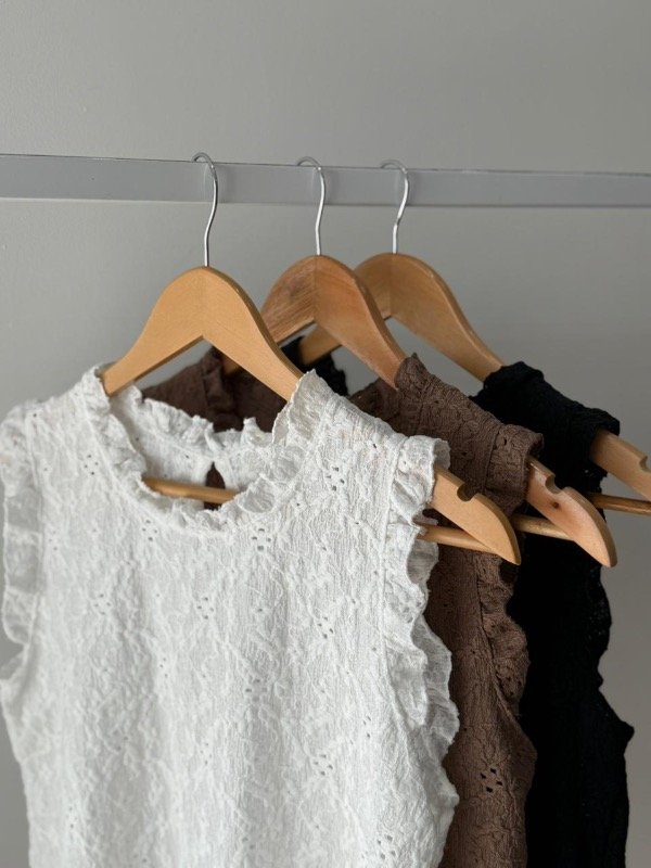 Musculosa algodón de broderie con volado en cuello y mangas.