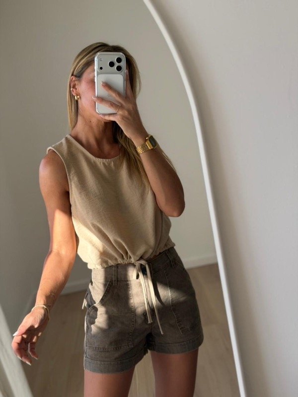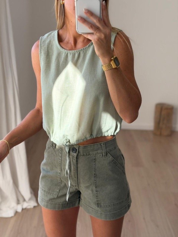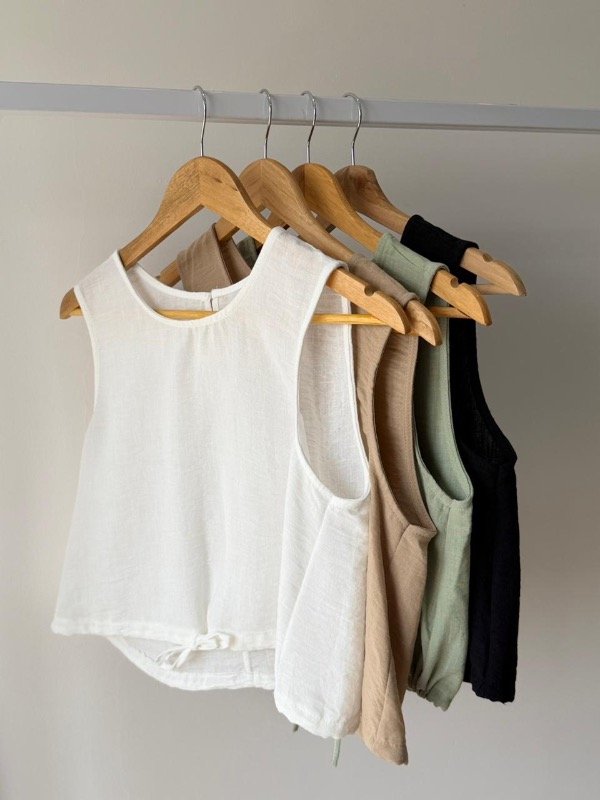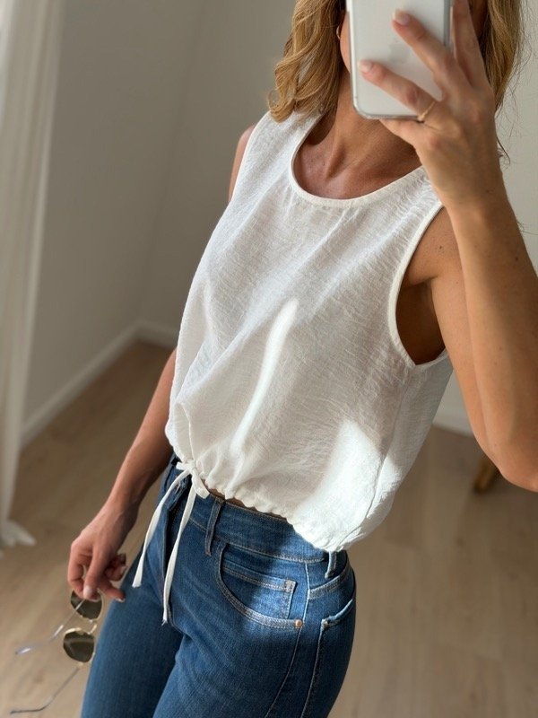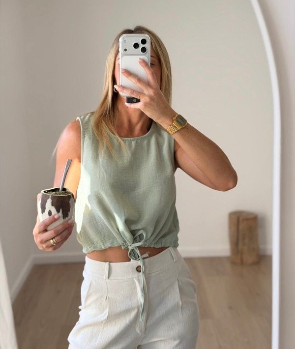 Musculosa de lino madrileño con lazo para ajustar abajo modelo crop L.