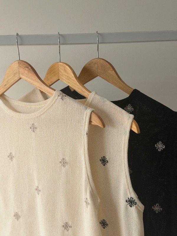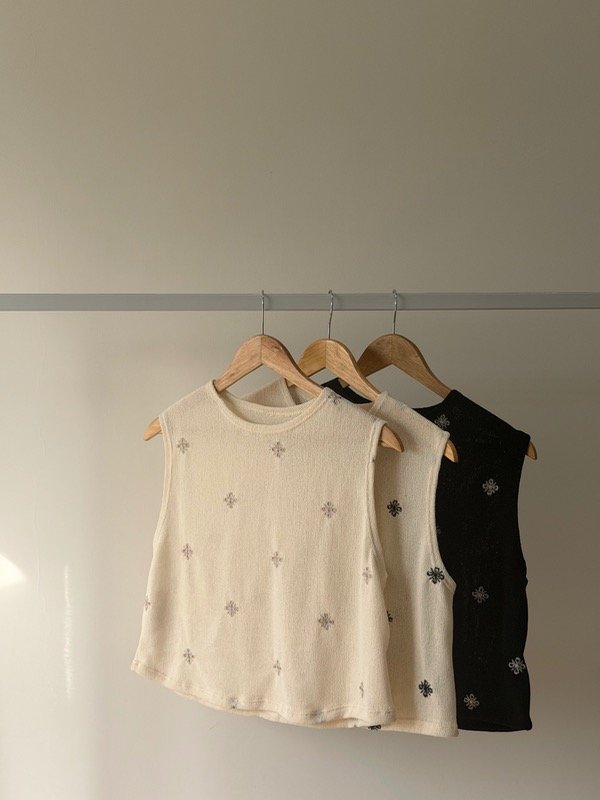 Musculosa tejida bordado flores semi crop .