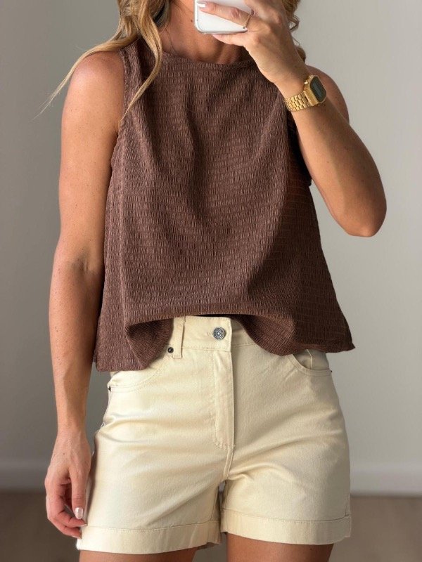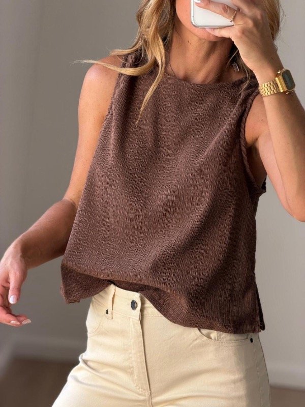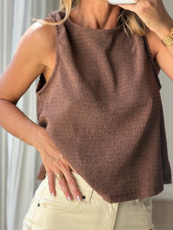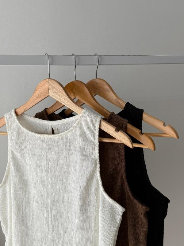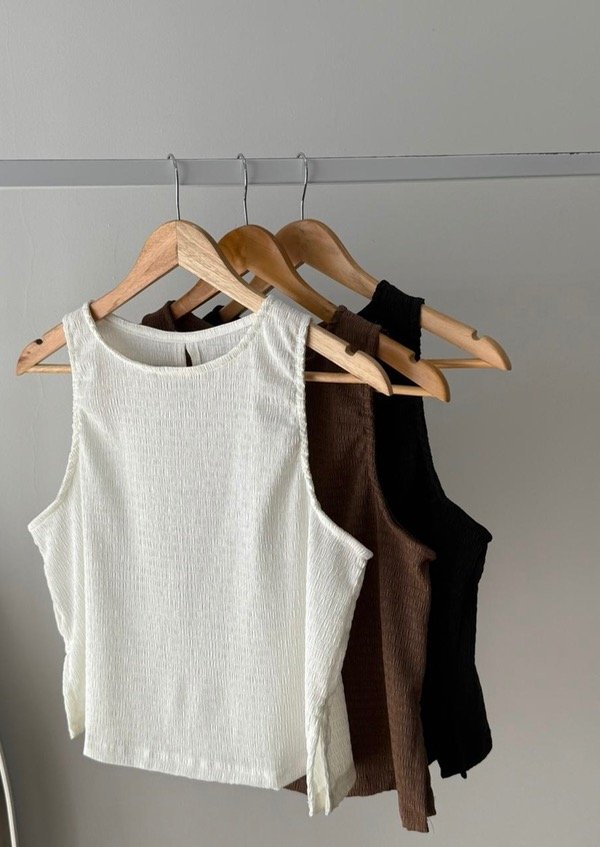 Musculosa tela elastizada con tajitos a los costados y gota en espalda.