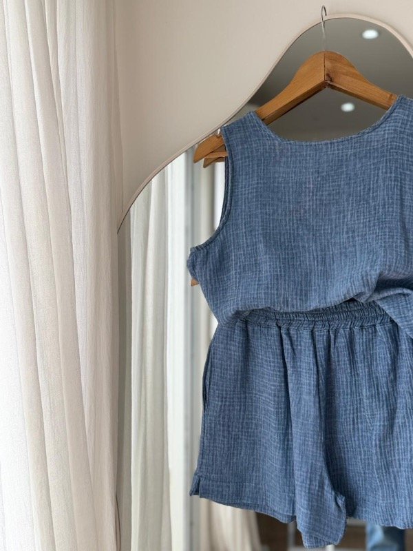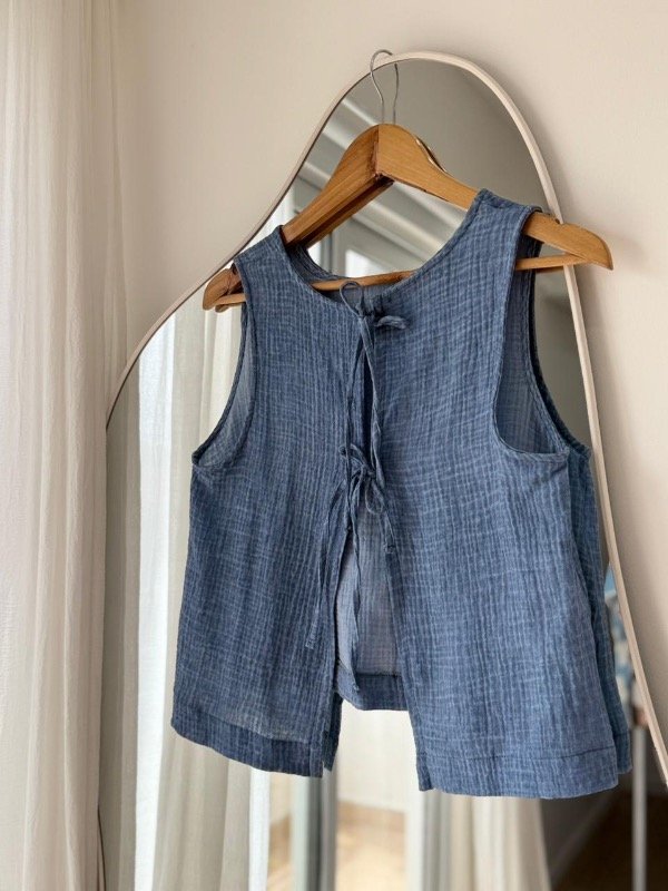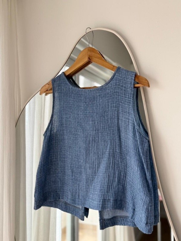 Musculosa algodón tramado espalda abierta 2 nudos arriba, más larga atrás.