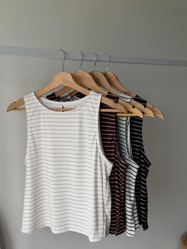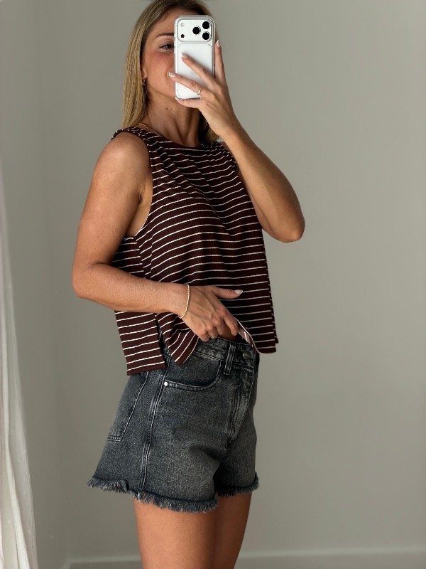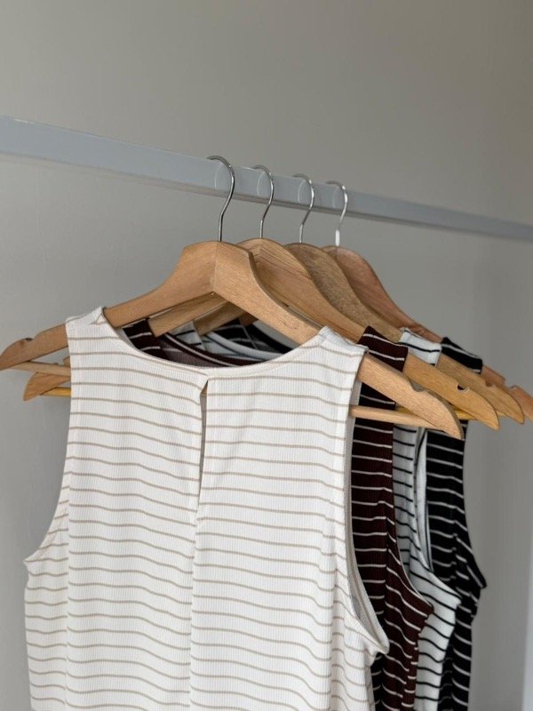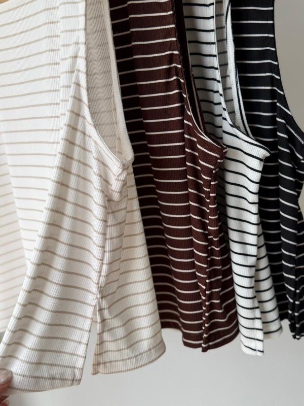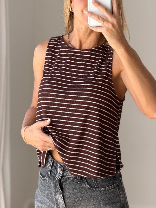 Musculosa morley rayada con gota en espalda y tajitos a los costados. Modelo semi crop.