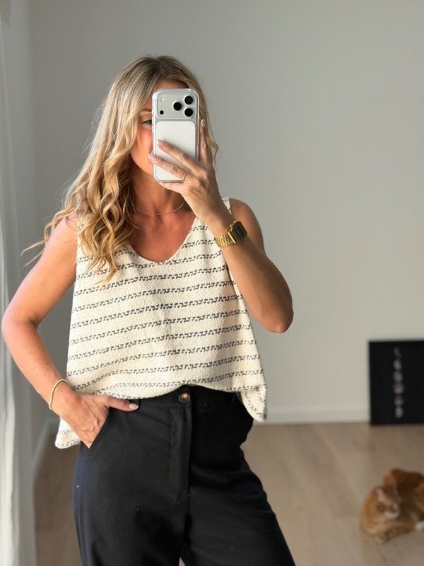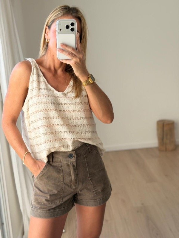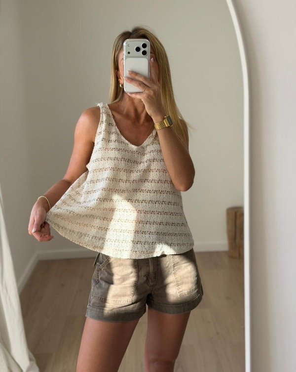 Musculosa tejida, bretel, cuello en V semi crop evase.