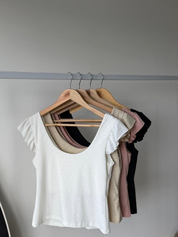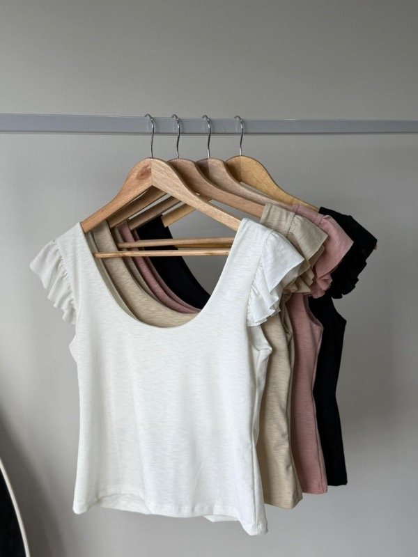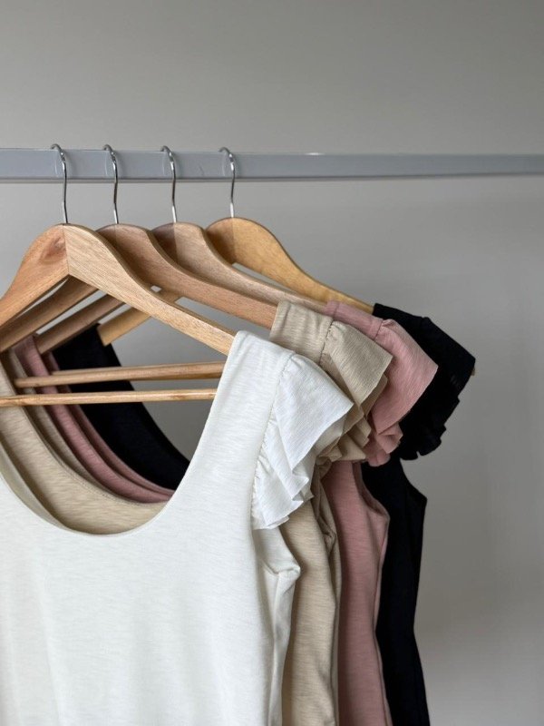 Musculosa algodón de flame liviano con volado en hombros escote en U, doble tela en el busto.