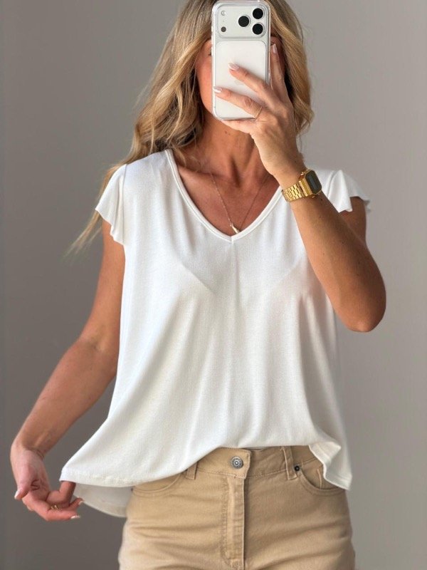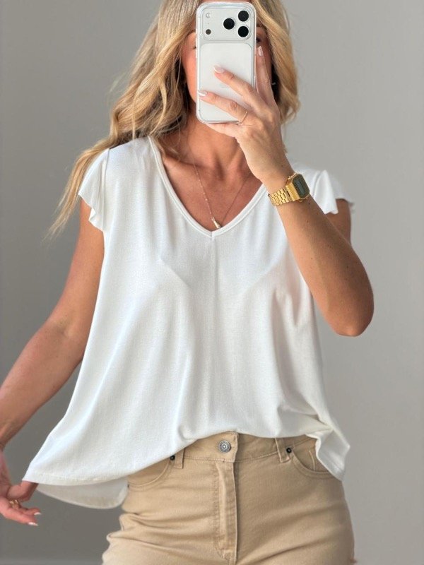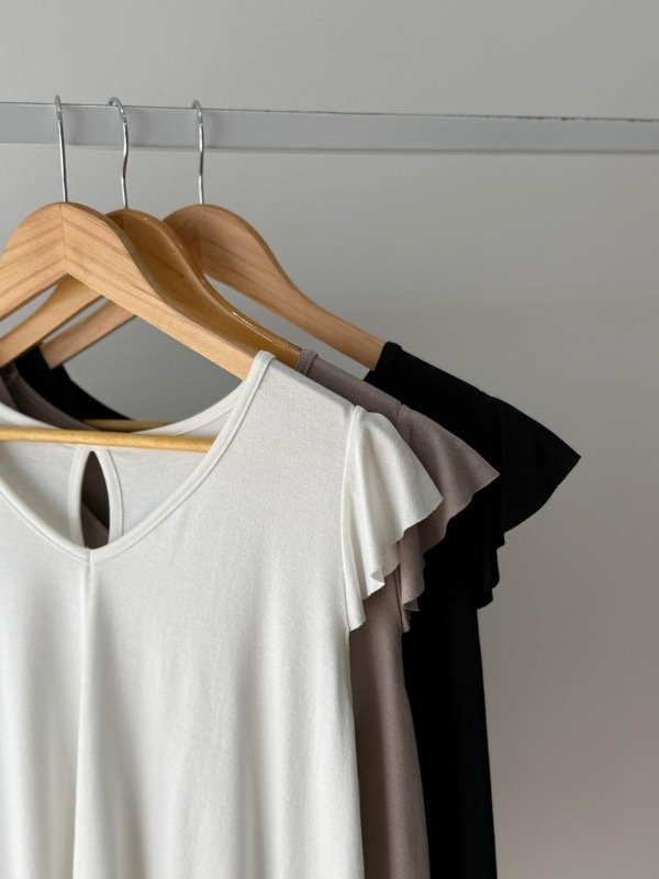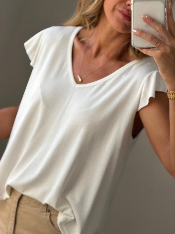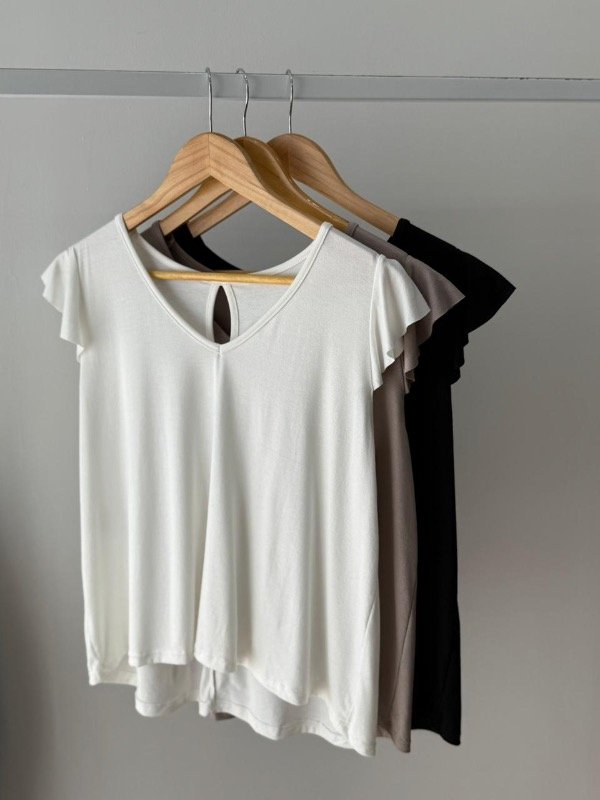 Remera creppe mangas cortas con volado en mangas espalda gota .