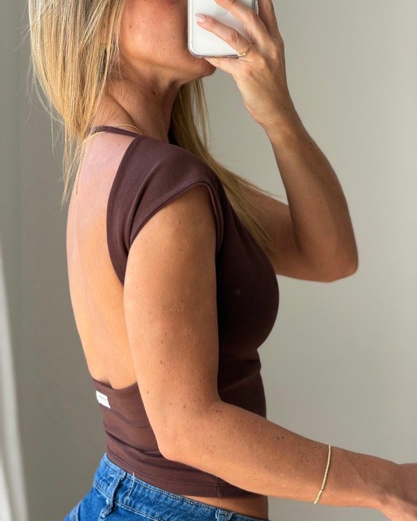 Musculosa tipo top cuello alto tira en espalda abierta.