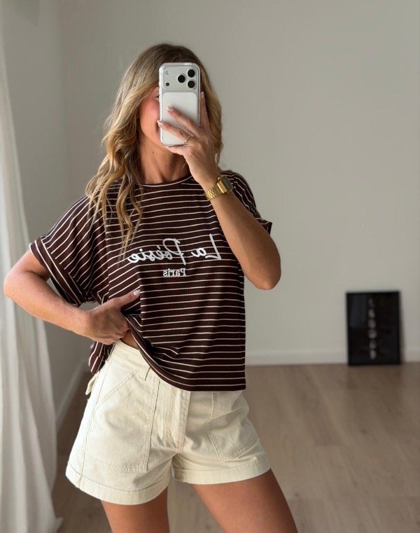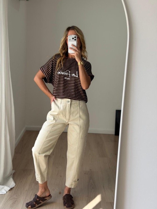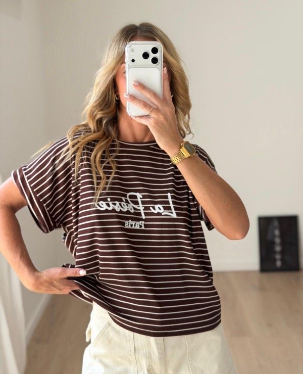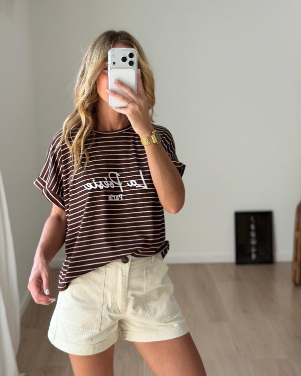 Remera morley rayada botamanga con estampada.