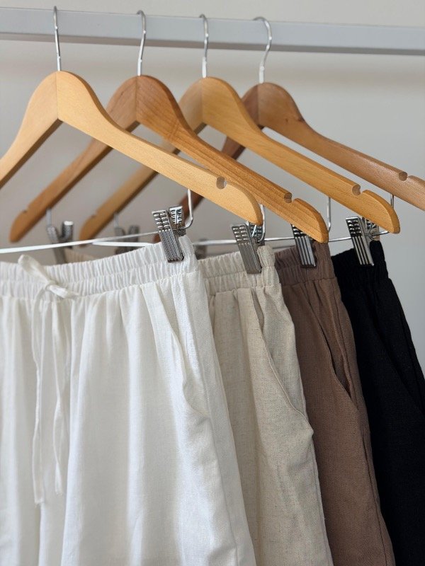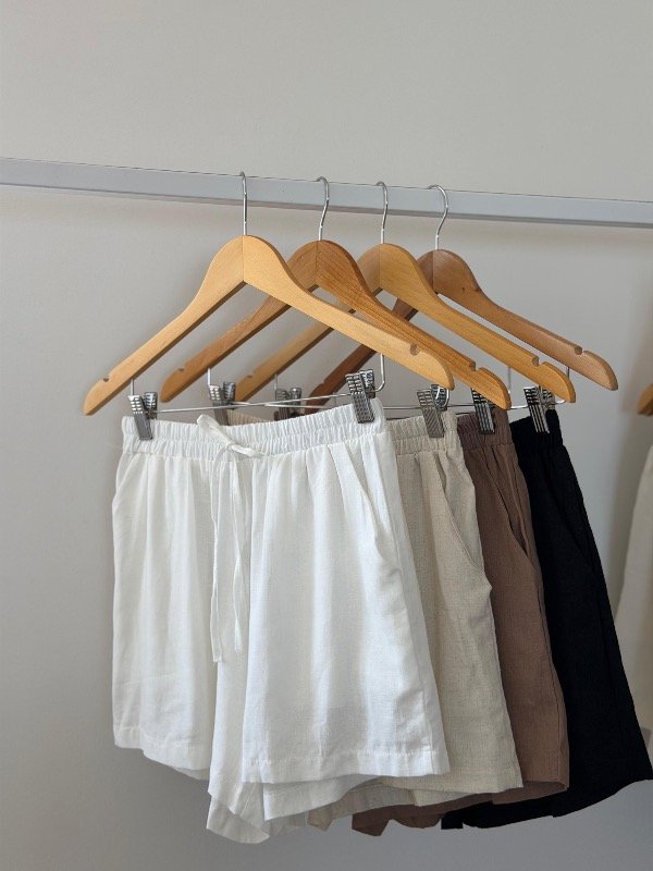 Short lino elástico en la cintura con lazo de adorno .