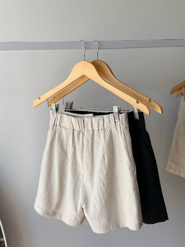 Short de lino con cierre, bolsillos, pinzas y elástico atrás.