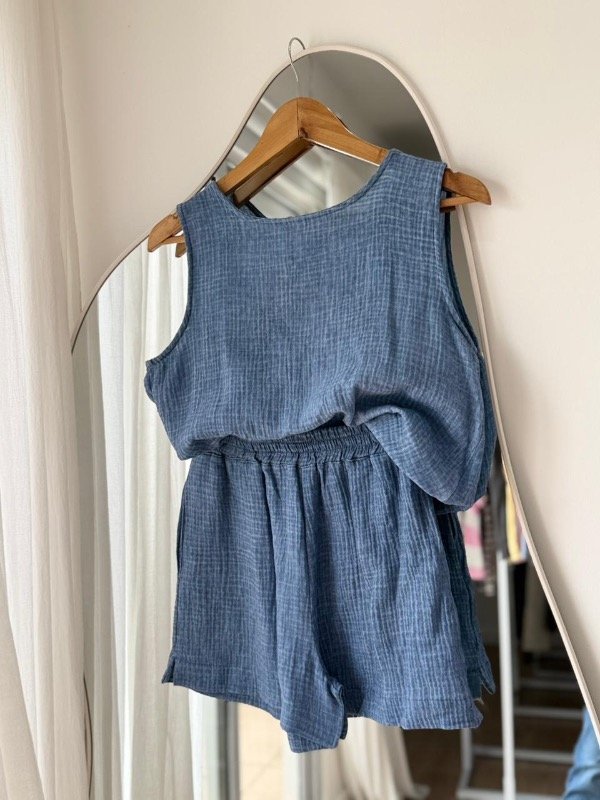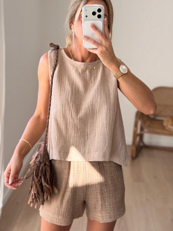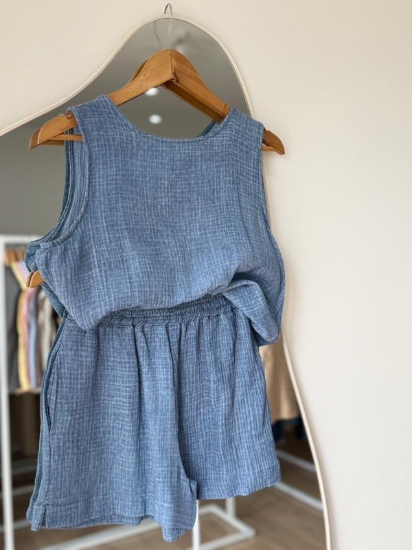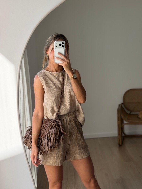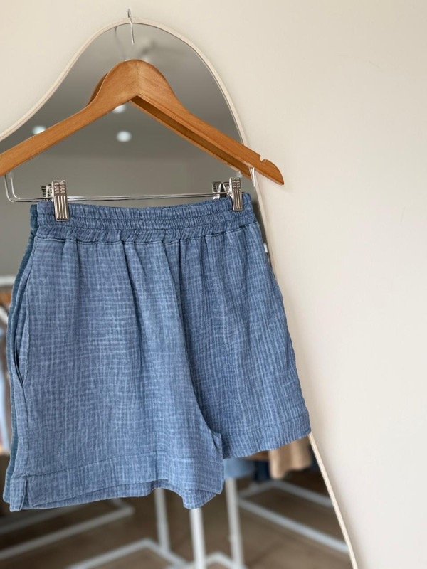 Short con bolsillos algodón tramado con elástico en la cintura.