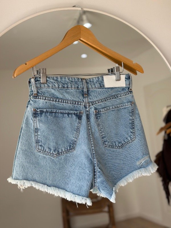 Lavado de base celeste, con desgaste sectorizado y roturas