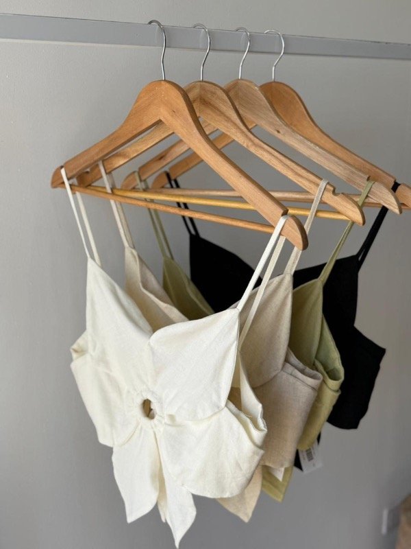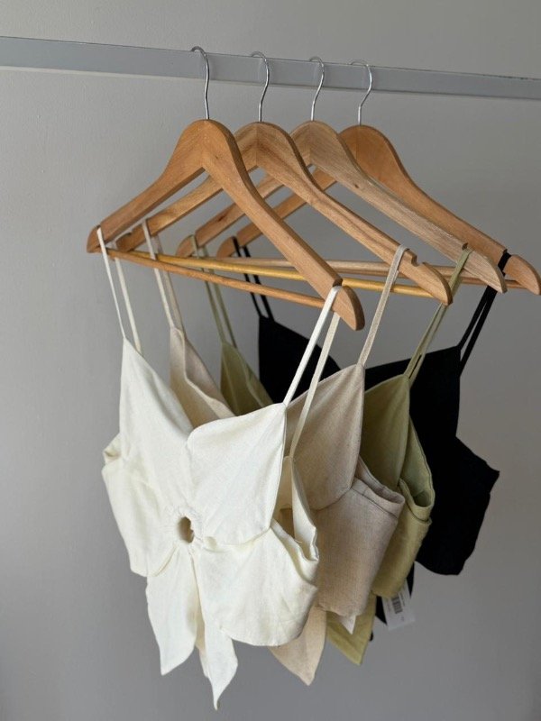 Top lino bretel espalda lazo para atar , aro en el medio , corte flor 🌼.
