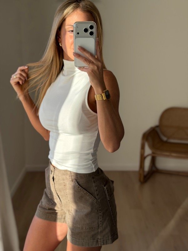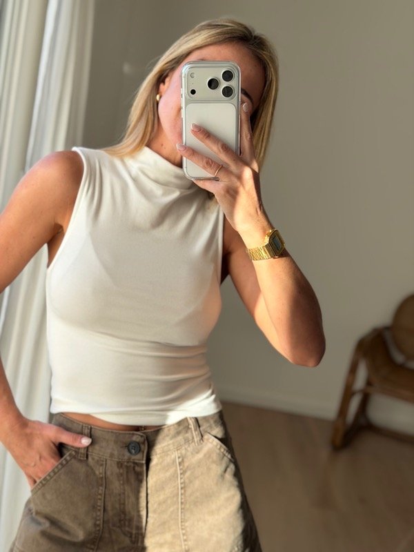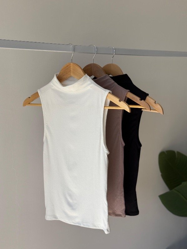 Musculosa cuello media polera algodón soft modelo largo al cuerpo.