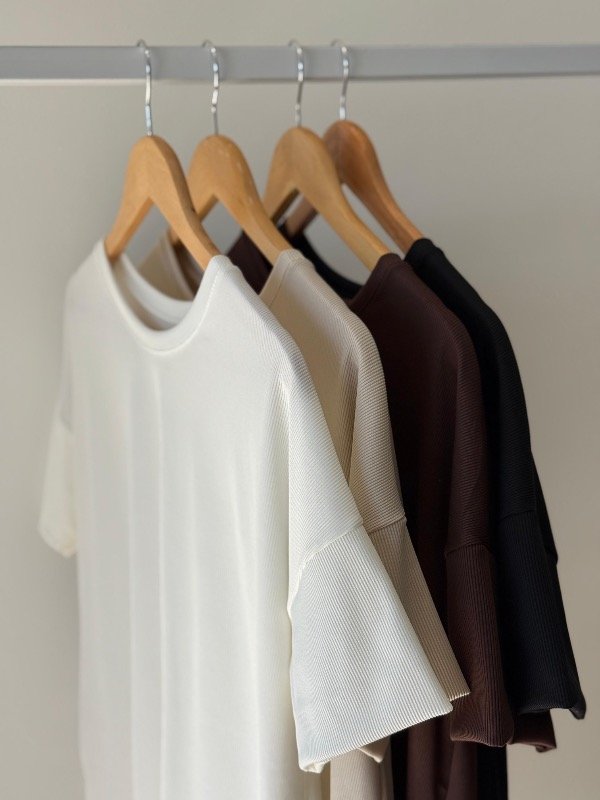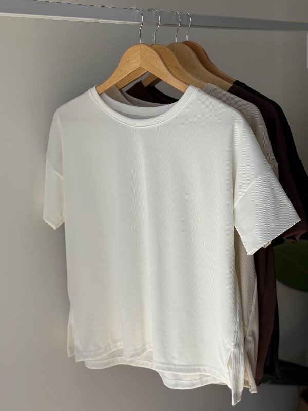 Remera tela rib lucra modelo over, amplio con tajitos a los costados.