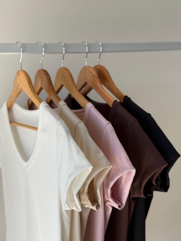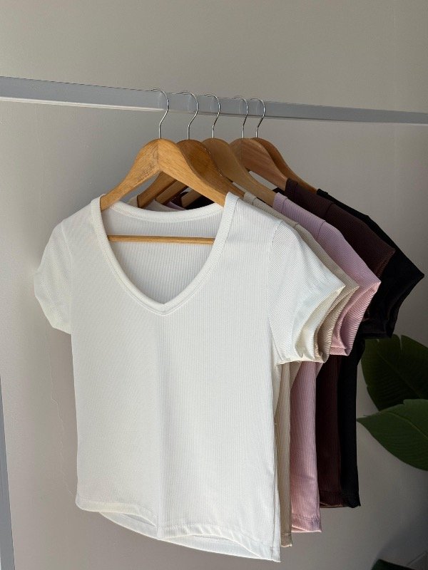 Remera RIB lycra cuello V semi crop.